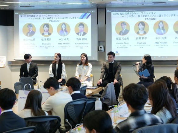 当社が参画する、資産運用業界における女性活躍推進に向けて業界を横断した取組みを行うネットワーク「Asset Management Women's Forum(以下、AMWF)」は、資産運用業界で働く社員が資産運用や業界の魅力を紹介する大学生向けイベント「思っていたより面白い!資産運用業界を知る~現役社員の本音トーク~」(以下、本イベント)を2026年2月10日に開催し、対面形式で約30名、ウェビナーでは約50名の方が参加しました。